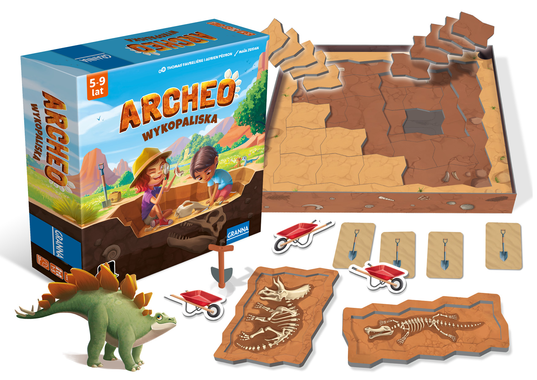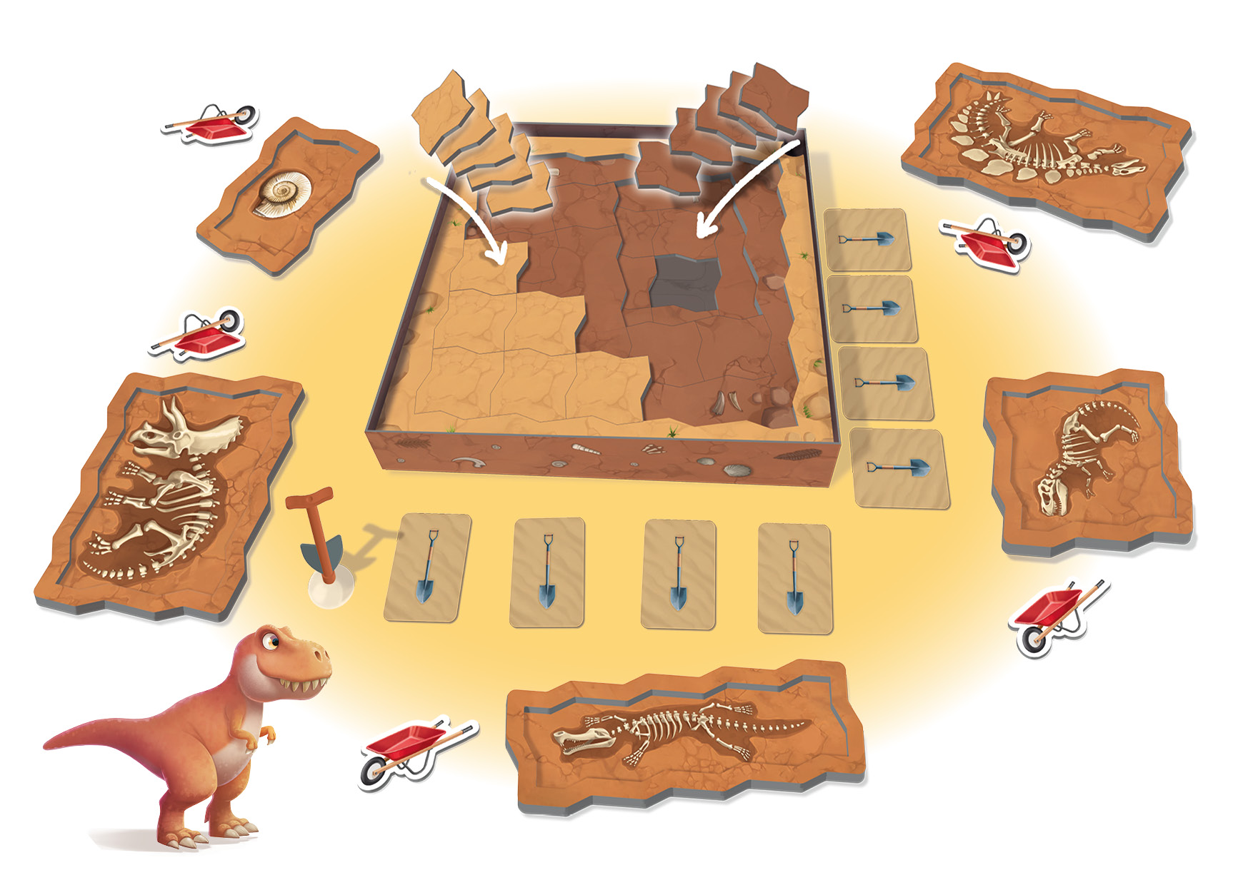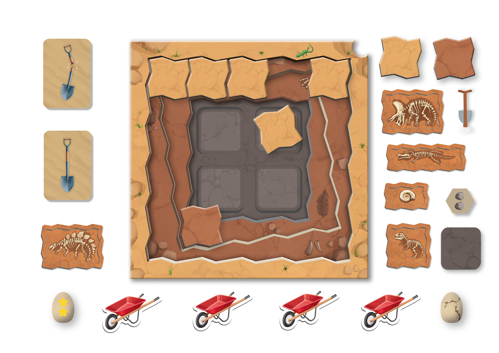 Współpracujcie, by odkrywać pozostałości po dinozaurach, używając sprytnej łopaty na unikalnej 4-warstwowej planszy.