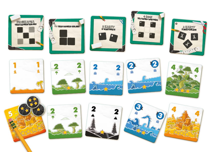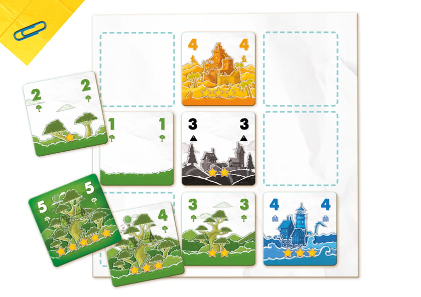 - Wyłóż określone karty, by stworzyć najlepszy pejzaż.